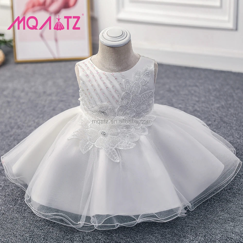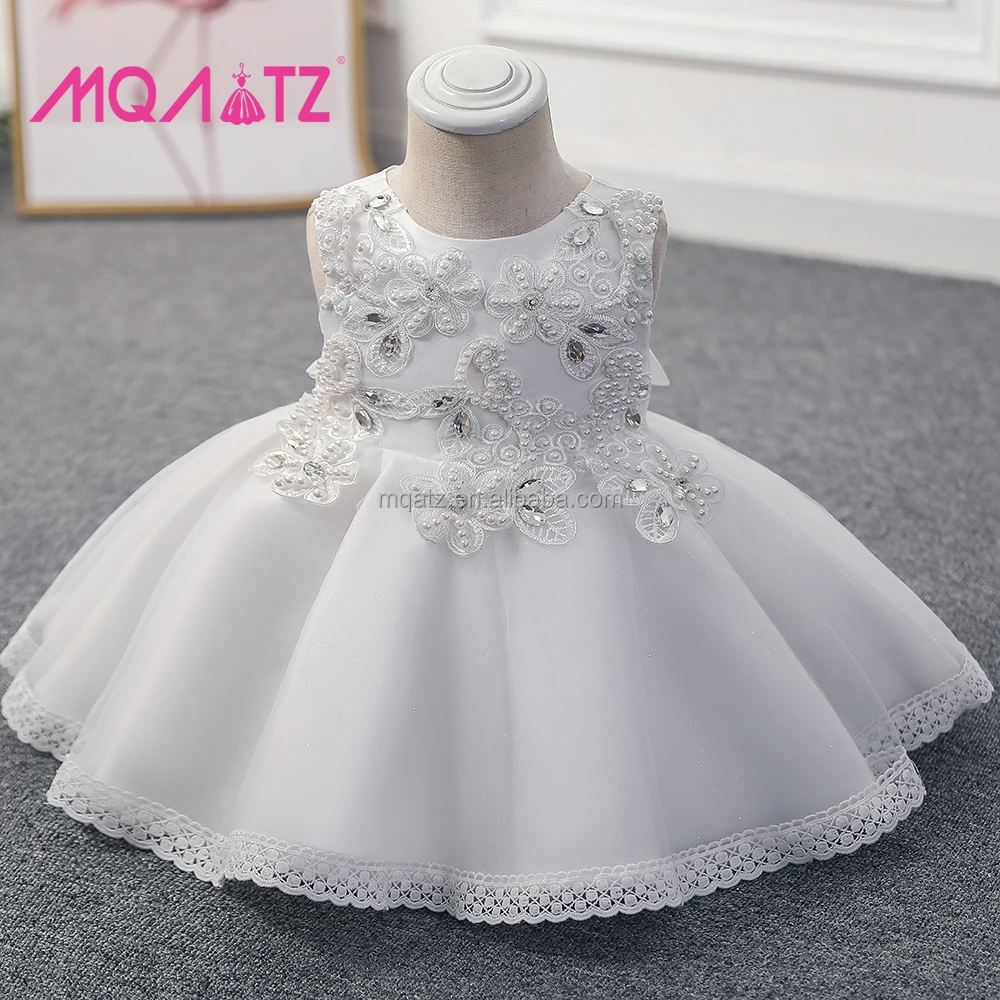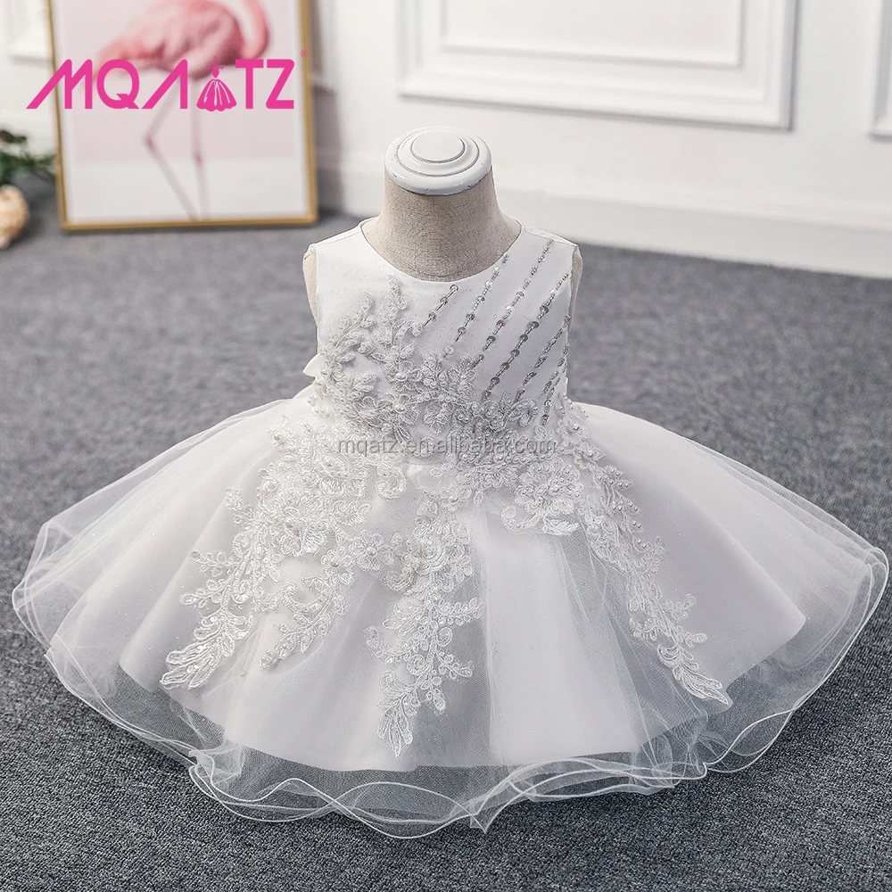 MQATZ Newborn Baby Girl Frock O-Neck Satin Dress Lace Decoration Formal Mini Design Patchwork Pattern for 1-3 Years Old Children